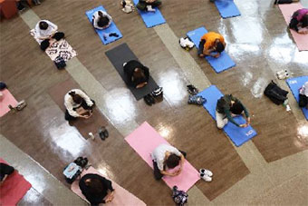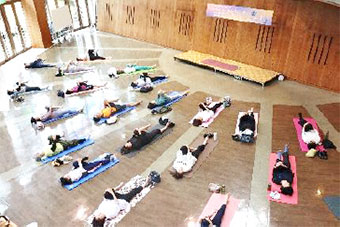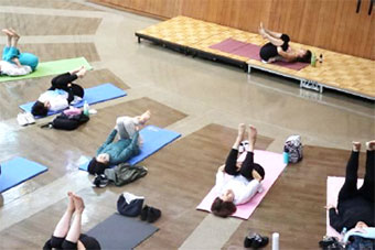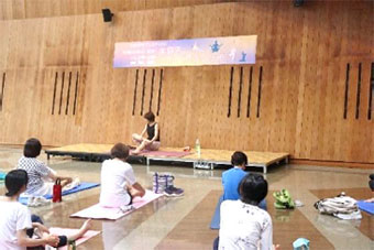 講師の是永幸恵さんのご指導のもと、49歳から81歳までが初心者でも実践できるエクササイズを2日間行いました。最近運動されていない方にも意識し、身体の部位を力を入れすぎない程度にほぐしながら、滞っているリンパや血液の流れが良くなるよう、ゆったり導かれました。時にはユニークなトークと共に和やかな雰囲気に包まれていました。受講者からは、「痛みを感じる部位に関連するツボを知ることで、自重で緩和できることが分かった。また参加したい」と感想頂きました。 (参加者:2日間延べ55名)