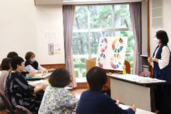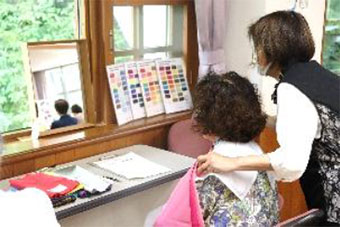 年齢と共に変わる自分に似合う色を知り、自分に似合う色で、「おしゃれ」を楽しむことを目的としました。顔型体系、髪色、瞳の色など生まれ持った特徴をもとに、「パーソナルカラー」についての解説に始まり、後半は一人一人に合ったパーソナルカラー診断をマンツーマンで参加者の話を伺いながら、丁寧に指導されました。
