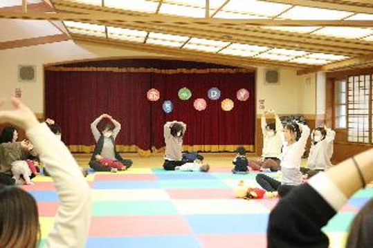 講師にヨガインストラクターの保科恵さんを迎え、赤ちゃんと一緒に参加できるヨガとして「ベビー&ママヨガ」を開催しました。まずは赤ちゃんが場に慣れるように手拍子しながら歌を歌い、赤ちゃんがリラックスしたところでお母さんの肩こり緩和や骨盤周りの筋肉を引き締める体操をしました。その後は、赤ちゃんとのスキンシップを交えながら親子でヨガを楽しんでいただきました。日頃忙しいお母さんがリラックスできる時間になりました。イベント当日がクリスマスということで、赤ちゃんの衣装に一段と力が入ったお母さんもいらっしゃったようです。
